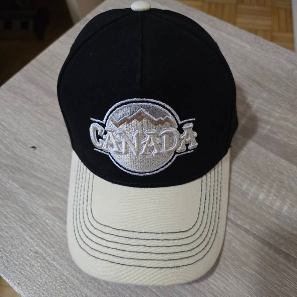 Elevate your street style with this premium two-tone trucker cap. Featuring a sophisticated black crown and cream visor, it showcases a high-quality embroidered Canada mountain patch. Crafted for durability and comfort, this cap offers a structured fit and adjustable closure, making it a perfect accessory for outdoor adventures or casual urban wear.